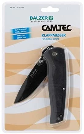 Balzer CAMTEC Folding Knife: Knife with Safety Clasp, The Unwanted back flaps of the blade. With belt clip. Blade Rust Free.