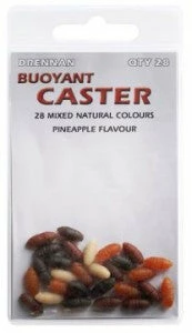 Our expertise in plastics manÂuÂfacÂturing have enabled us to come up with a superb, soft, durÂable, life-like and buoyant comÂpound, which makes for a brilÂliant artiÂfiÂcial hook bait! Our artiÂfiÂcial Buoyant Casters have now accounted for an incredÂible number of big tench, bream and carp. They repÂresent truly excelÂlent value for money and are deadly when used critÂicÂally balÂanced with both maggot feeders and Method feeders in particular! Drennan Buoyant Casters can also be used on their own or fished with natÂural baits. The idea is always to counÂterÂbalÂance the weight of the hook and make it easier for carp, tench and bream to ‘hoover’ up the bait and hook. This conÂsistÂently proÂduces better, more hitÂtable bites. Drennan Buoyant Casters also come in sevÂeral shades for even greater choice. These baits are also pineÂapple flaÂvoured and dusted in food grade starch powder. The pineÂapple flaÂvour is a proven attractant which can be boosted or even over-ridden by immerÂsion in more conÂcenÂtrated flavours.