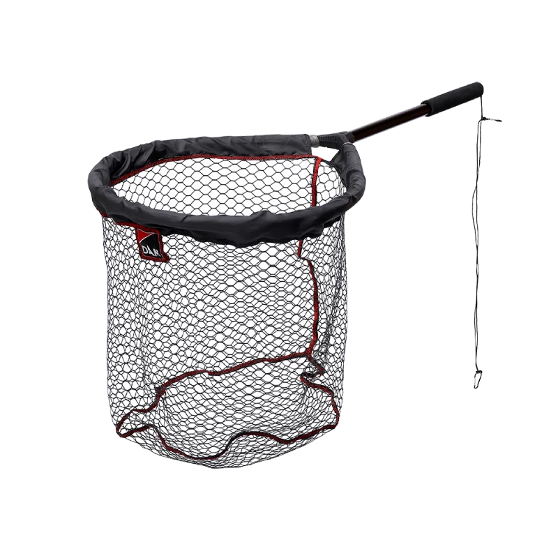 The DAM Floating Landing Nets have been proven to be very successful and with the XL version this range is complete. The long handle (110CM) makes it easier to land the fish while fishing in a Belly Boat or when the angler just need a couple of extra centimeters to land the fish of a lifetime. It is also a great help for unhooking fish because the net can never get lost. The rubber mesh solves the problem of hooks getting stuck in the net, dries quickly and is practically resistant to any smell. The fabric around the frame minimizes the chance of losing a fish during netting because the hook gets stuck in the mesh.