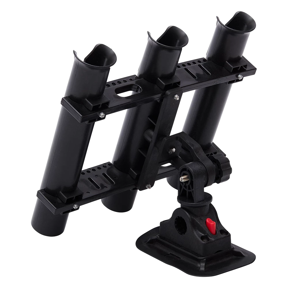 The DAM Rod Holder 3 Rods can hold three rods (spin and/or casting). Fits on the DAM Rod Holder Mount(not included), which can be screwed directly on any flat surface (or on the DAM Glue-On Mount Base, for use on a dinghy or belly boat).