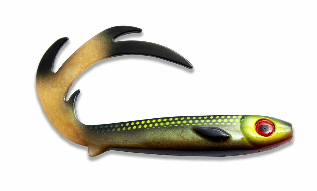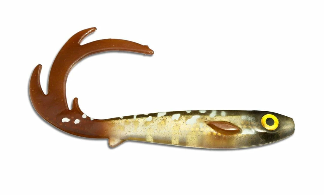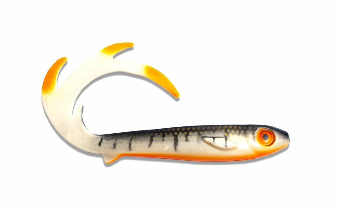 Rig it on a Shallow Screw or Flexhead Pike together with a Shallow Stinger Small. Rigged on a Flexhead Pike or regular jig head, some of the wiggling action of the body disappears but it still works wonders and catches loads of fish. Just imagine what this tail does on the drop if you give it a pause in the water… Make sure to be ready to set the hooks!Â