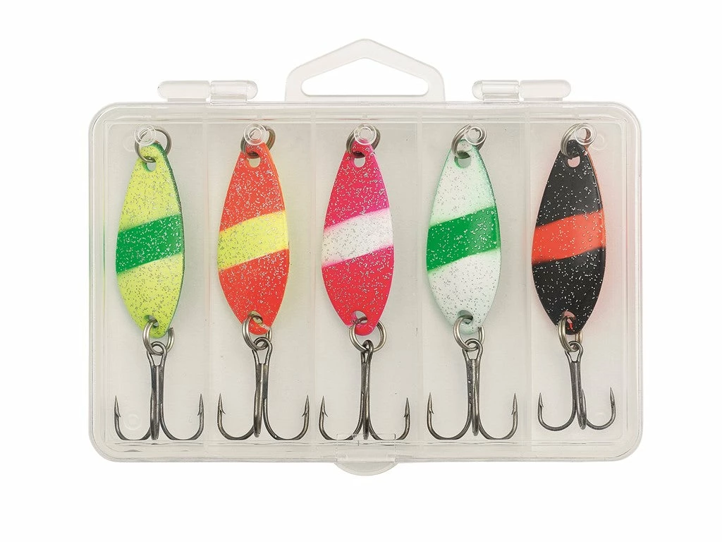 The colours are selected for rainbow trout fishing, but these colours work very well for perch too. If you like to fish rainbow trout in P&T lakes or perch these lures should for sure be in your box. Power coated finish.