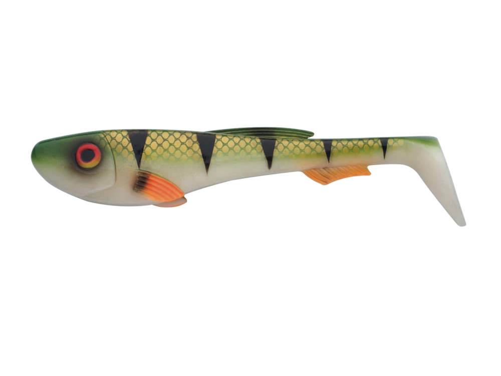 The Beast Paddle Tail is based on the proven shape of Swedish designed swim baits with a retro-cool twist. The lure’s large paddle tail gives it a very steady rocking motion over the full length of the shad. A versatile bait for very big pike!