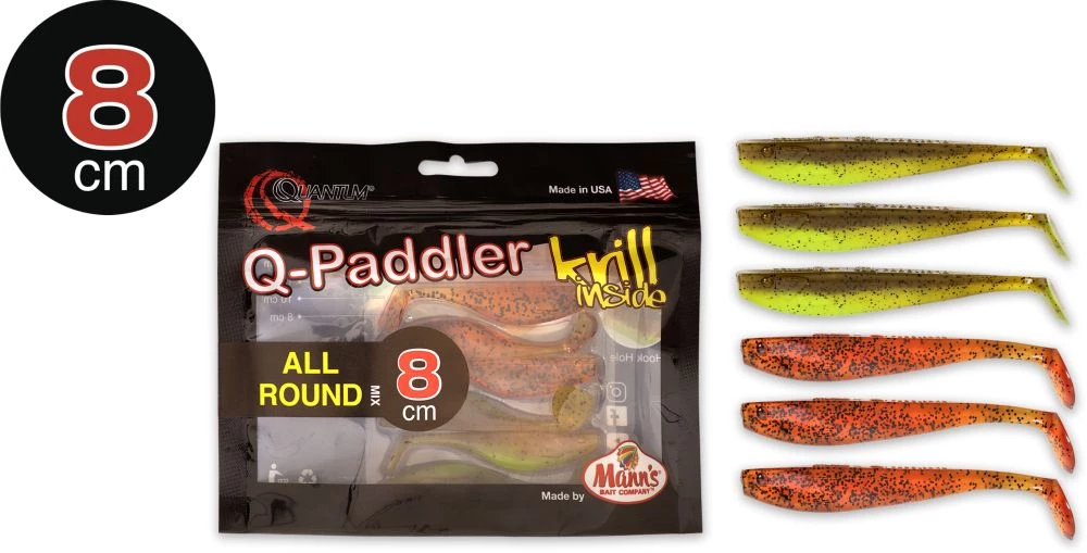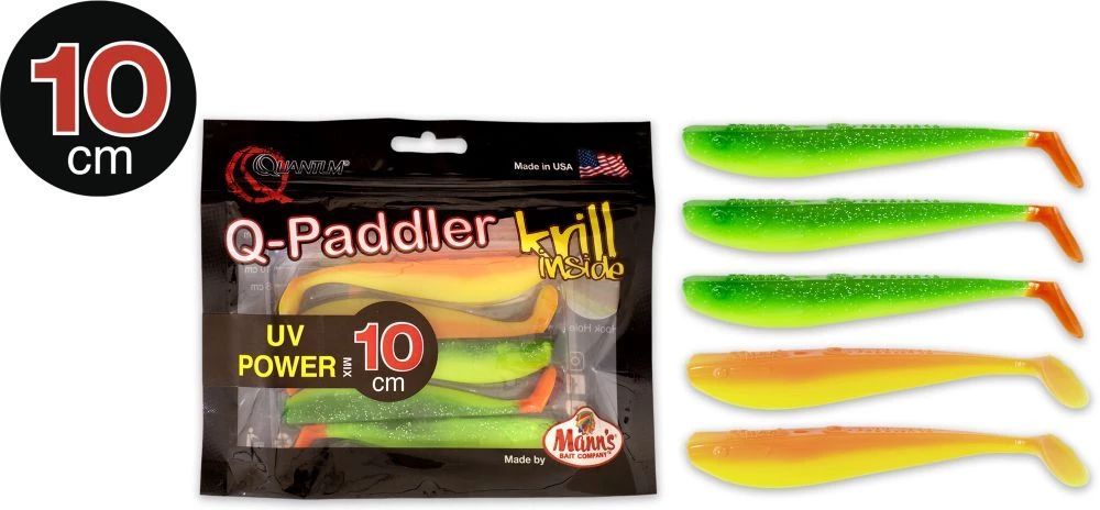 Softbaits with concentrated catching power! A perfect combination of the most effective colours and optimal bait sizes, refined with 100% krill extract! Krill is proven to be the most effective attractant for all fish. Not only does it entice sluggish predators to attack, it also makes them hold the bait in their mouths longer once it has been seized. Available in two sizes: the 8 cm Paddler version is irresistible to perch and the 10 cm Q-Paddler is an absolute blockbuster for zander. Available as “Clear Water Mix” for highly visible water and bright fishing weather with sunshine. But also as “UV Power Mix” for murky water and dark skies. And as an “All-round Mix” for all water types and lighting conditions.