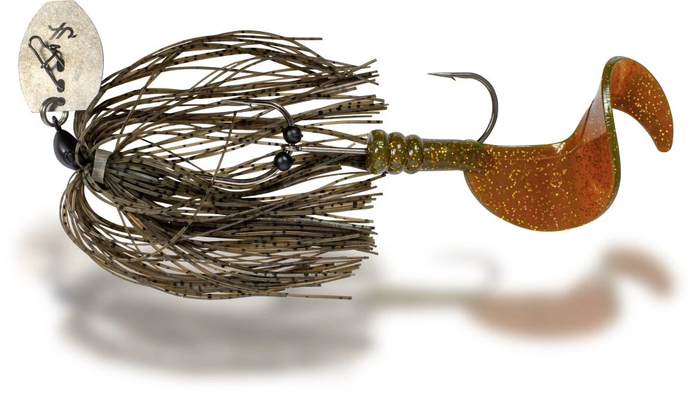 The perfect search lure for pike! The larger the water, the more difficult it is to locate active predators. This is why professional pike anglers have used large spinners and chatter lures for many years. These attract attention over long distances by creating pressure waves via the metal plate at the front of the jig head, which are carried through the water. The shaking of the metal plate is transferred to the skirts, causing the fringes to dance. The additional colourful twister tail fitted as a teaser on the trailer hook also tempts monster pike to attack! Available in 4 attractive colour designs and in 2 jig head weights: 9 g head with 24 g overall lure weight and 16 g head with 30 g overall lure weight.