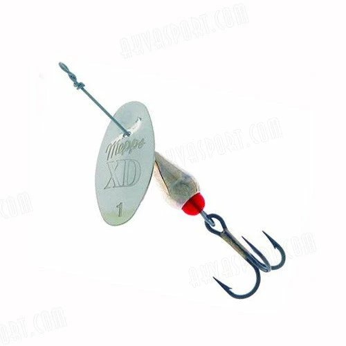 If you fish deep lakes, river pools or fast water you owe it to yourself to try the Mepps® XD® (Xtra Deep). Mepps didn’t invent the shaft-through-the-blade spinner, we perfected it. Every XD features a precision, solid brass fulcrum bead between the blade and body allowing the blade to spin at any retrieve speed. It also allows the blade to spin as the lure drops providing additional attraction. No other shaft-through-the-blade spinner offers this feature. Mepps has always used strike attractors, a splash of color that enhances the lure’s visibility. For each XD we selected either a bright red or fluorescent bead tucked securely into the back of the body. All XD silver blades and bodies are plated with genuine silver creating a bright white flash that’s easily seen underwater. Some blades and bodies are platium (plaý-tee-um) plated. Platium is a natural element that has a remarkable resistance to corrosion. Gold blades and bodies are polished brass. Painted blades feature a Mepps chip-resistant proprietary blend of acrylic and epoxy finishes. Because it’s assembled with the best components possible, the XD holds up well when fishing rocks, stumps and rip-rap where trophy fish hang out. As if all this isn’t enough, the XD runs deeper – size for size – than any other lure in its class.