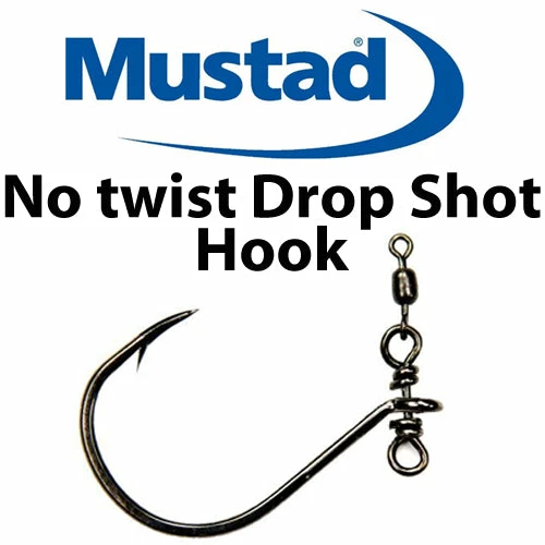The Mustad No-Twist Drop Shot Hook (NTS548) is the perfect dropshotting. Featuring chemically sharpened Opti-Angle Needle Points and a Nor-tempering process that makes hooks up to 30% stronger than ordinary hooks. An easy-to-rig design allows the hook to rotate a complete 360º without twisting your line. This makes for perfect presentation when using a dropshot rig.