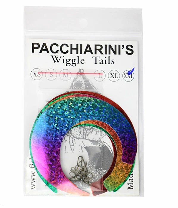 Wiggle Tails are simply awesome! They consist of a thin but yet totally tear proof and very durable coated textile canvas which comes in great colours and even holographic prints on it. You won’t cast a mile with an attached tail and they make some noise cutting through the air, but it is all worth it when you see how they perform in the water and how they will increase your hookups.