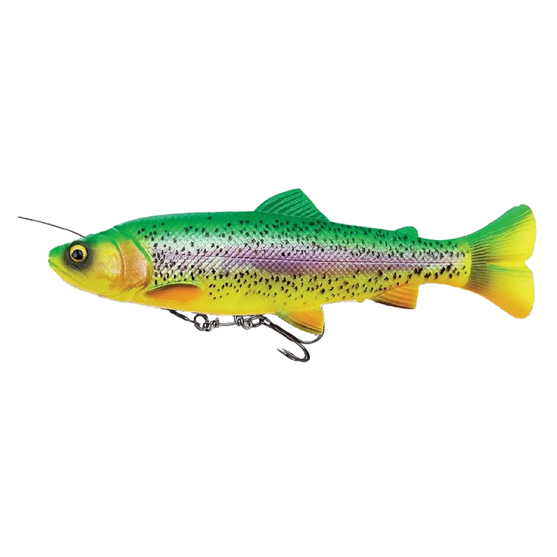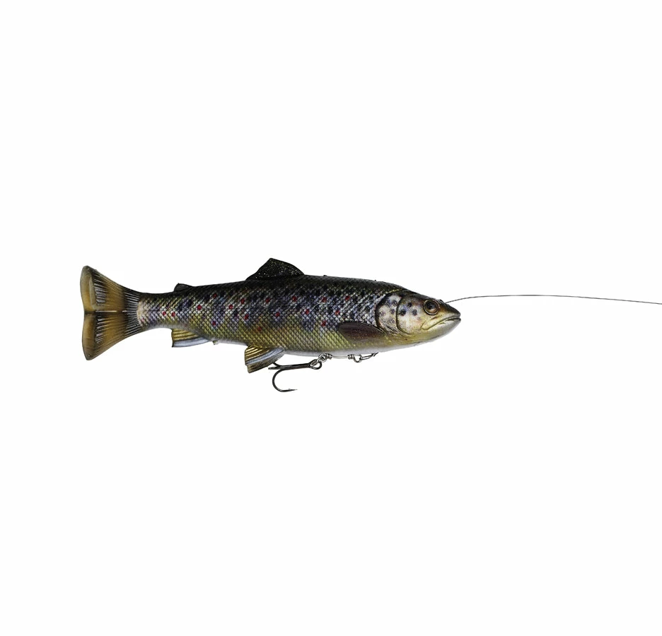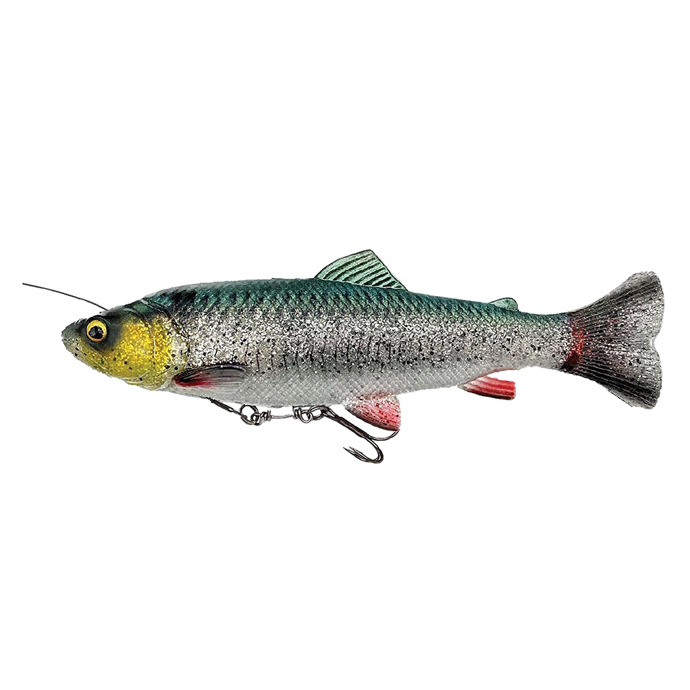 Based on the scan of a real Trout, with super realistic details! The Pulse tail delivers a subtle ultra-realistic action at both slow, medium and high speed. The tail has a slot for glass rattle and scent. Designed with our Brilliant Line thru design, the lure will slide up the trace away from the shredding teeth and the Pike cannot use the weight of the big lure to throw the hook. ”