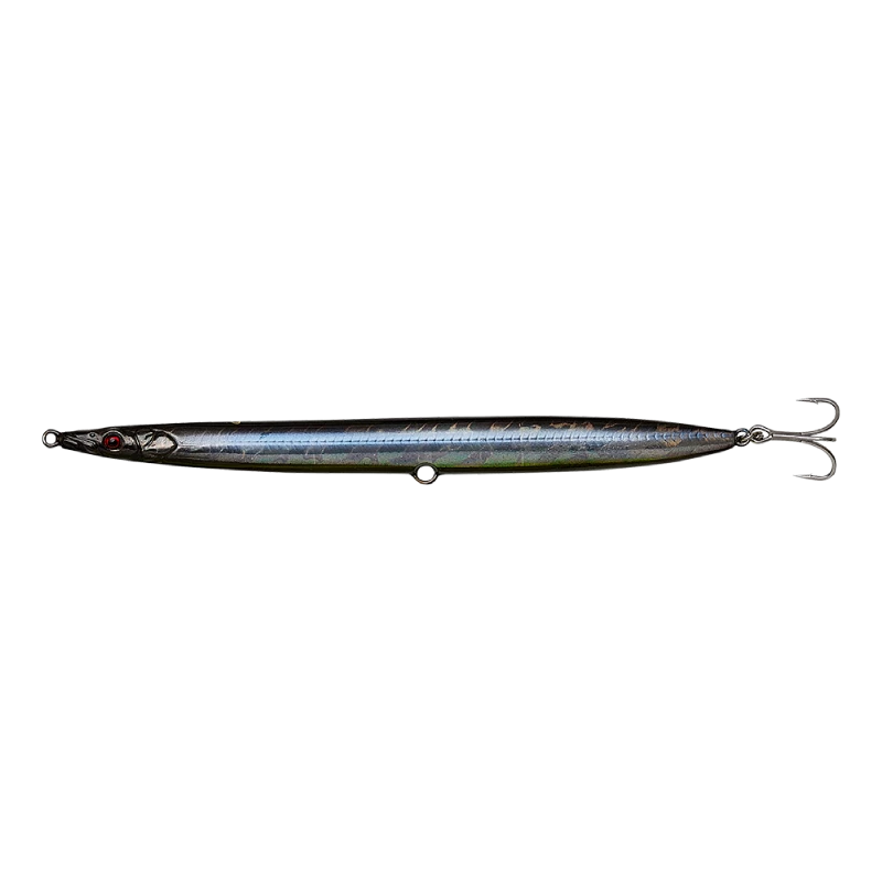 Based on a 3D Scan of a Real Sandeel. Swims with a seducing slim S-curve, head slight up. On the stop, the lure flutters and rolls backwards – triggering hard strikes. The lure has a built-in rattle chamber, that sends out a loud clicking sound, when twitched. Extreme long cast design for amazing coverage. Supplied with both a single and a treble hook.