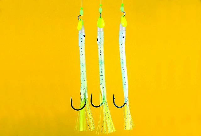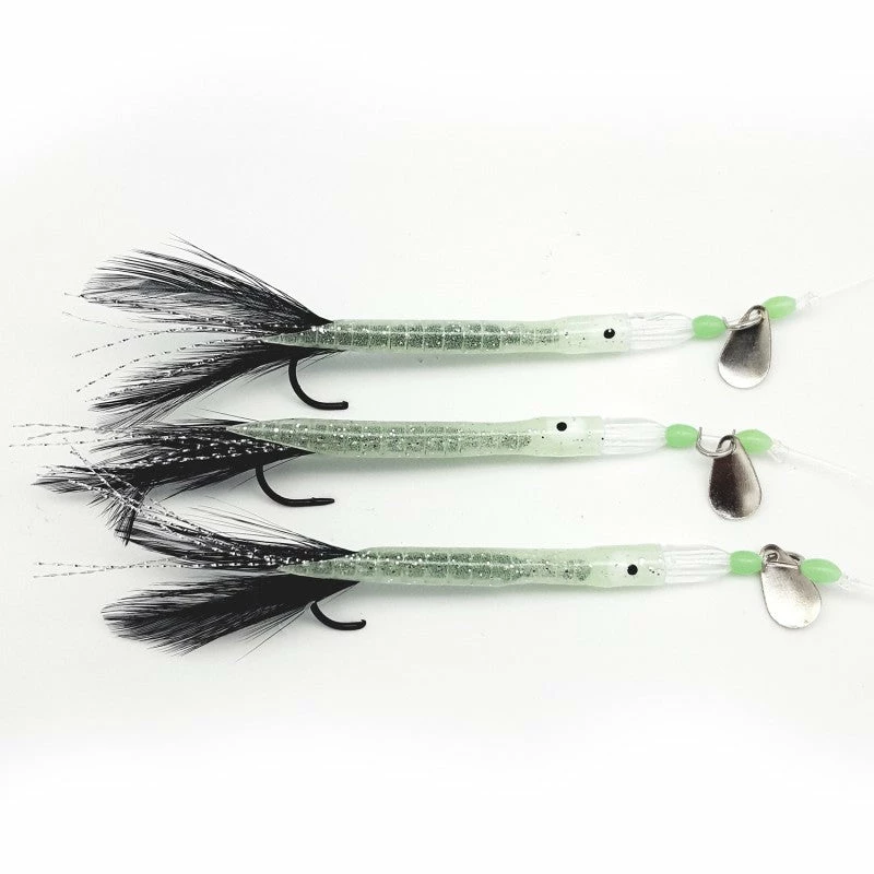 Once again, this rig is one of the products which put Shamrock firmly on the Fishing Map! The luminous body has been made slightly translucent to allow the feathers to show through which reflects more life, like a bait fish. Really superb for Cod, Ling, Haddock, Pollock, Coalies, and even the bigger fish, Conger, Huss etc.