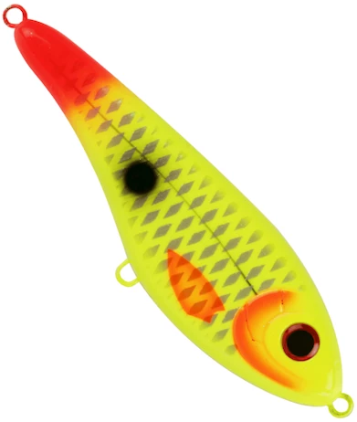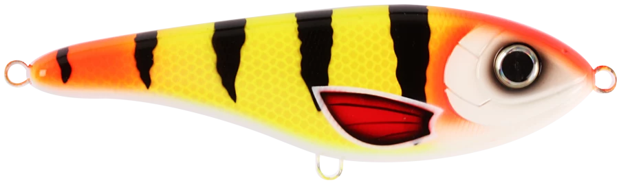 The StrikePro Buster Jerk is an extremely versatile pike catching machine. Deadly side-to-side action with hot “belly flash”. This is also a great lure to crank. Rip, twitch, pull, or jerk …just remember to pause in any combination. Great lure all season long. It’s the easiest and best glide lure you’ve ever worked!