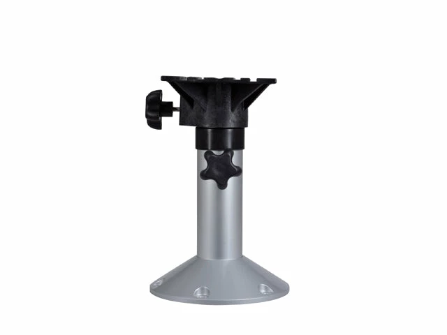 Pedestal adjustable in hight made of anodised aluminium. 360° turnable, tube Ø 73 mm, polished foot Ø 230 mm.