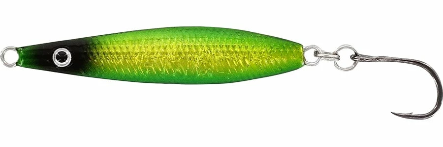 We have created a jig lure for saltwater species that is simple, beautiful and gets the job done. Whether you’re targeting seabass, mackerel, barracuda or amberjack, this baby can be used to catch them in a variety of ways. Spinning, vertical jigging, jigging and slow jigging all produce results with Salty thanks to its flattened and curved body profile. It is equally at home splashing in the shallows or diving into the depths and promises to reduce lost fish thanks to a reinforced single hook and double splitrings that allow it some movement when a big one strikes. Salty is a no-frills, fish-catching favourite that you need in your tackle box.