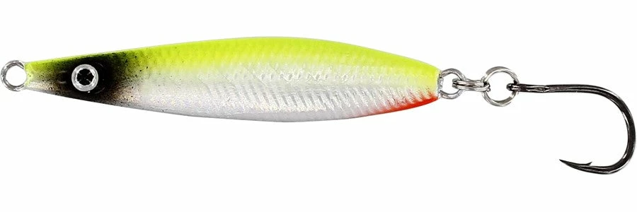 We have created a jig lure for saltwater species that is simple, beautiful and gets the job done. Whether you’re targeting seabass, mackerel, barracuda or amberjack, this baby can be used to catch them in a variety of ways. Spinning, vertical jigging, jigging and slow jigging all produce results with Salty thanks to its flattened and curved body profile. It is equally at home splashing in the shallows or diving into the depths and promises to reduce lost fish thanks to a reinforced single hook and double splitrings that allow it some movement when a big one strikes. Salty is a no-frills, fish-catching favourite that you need in your tackle box.