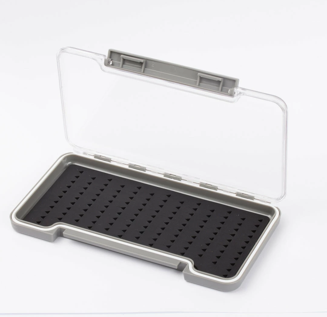 | This box features a tough, ultra-tight grip, black silicone bed, these clear view fly boxes offer a secure solution for your precious fly patterns. Â The Double Nymph Box has many precision cut slots in the black (stealth) silicone, so that you can carry all those essential nymphs for both still and running water fishing situations. Â |